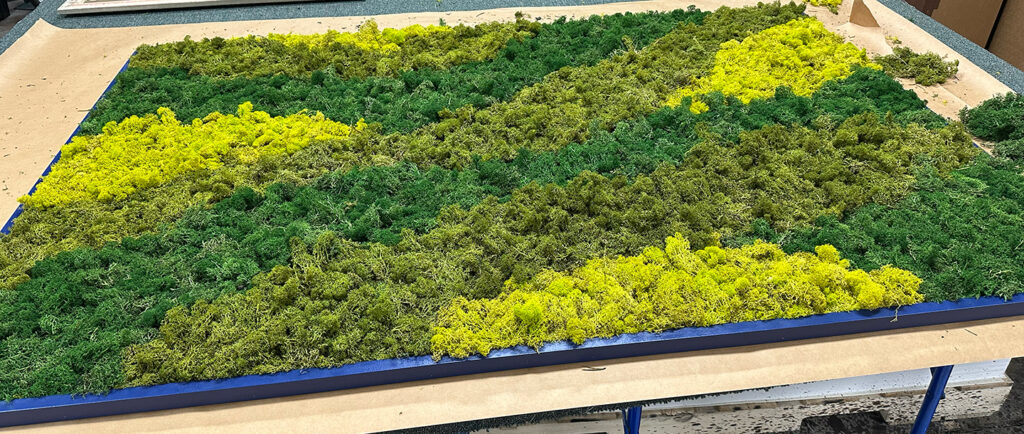 Biophilic design is an art concept to help people connect to the natural environment through the use of direct nature, indirect nature, and space and place conditions. One great way to do this is through Moss Art – artwork that is made with Moss. We create this – in a manner that needs NO Maintenance! Wall art made with moss is a great way to add beauty, color and personality to spaces. Encourages relaxation and reduces stress! Beauty + Function!